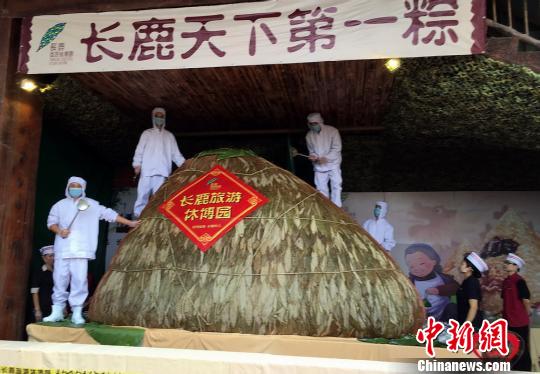 該景區(qū)已經(jīng)連續(xù)多年在端午節(jié)推出“品嘗‘天下第一大粽子’”活動,往年的粽子重約3噸,由于慕名前來品嘗粽子的游客增多,今年大粽子重量增加了0.5噸。