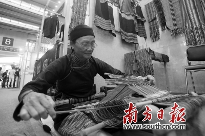 在文博會8號館非物質(zhì)文化遺產(chǎn)館,參展商正在展示黎族傳統(tǒng)紡染織繡技藝。南方日報(bào)記者 朱洪波 攝