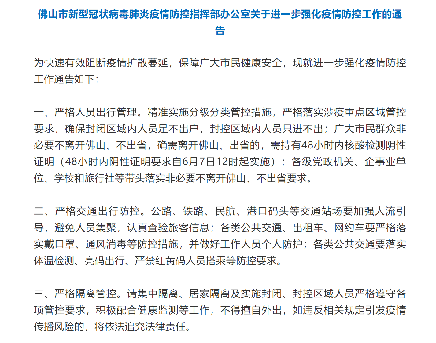 央廣網(wǎng)佛山6月8日消息(記者 張勝強)據(jù)佛山市南海區(qū)新型冠狀病毒肺炎疫情防控指揮部通報,6月7日0一24時,佛山市報告1例境內(nèi)無癥狀感染者轉(zhuǎn)確診病例。