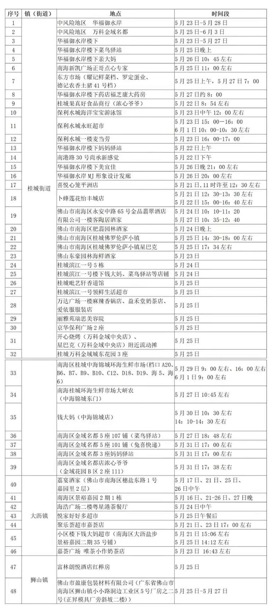 央廣網(wǎng)佛山6月8日消息(記者夏燕 佛山電臺 付國華)6月8日,佛山市南海區(qū)新冠病毒肺炎疫情防控指揮部辦公室通報了近期新冠病毒感染者涉及的48個重點場所或小區(qū)。