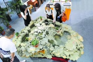 梁佩陽說,這塊石材在相關(guān)部門“封坑”之前就已經(jīng)開采,但在當(dāng)時也屬于非常難得的原料。因此他費(fèi)盡心力地構(gòu)思,最終將端硯制成一個巨大的魚缸。如同充滿詩情畫意的名字一般,《荷塘清趣》極具韻味。雖然是一個魚缸,但是由于梁佩陽精心設(shè)計(jì)構(gòu)圖,使之宛若一個天然池塘,充滿了蓬勃生機(jī)。據(jù)梁佩陽介紹,他2001年就開始創(chuàng)作《荷塘清趣》,歷時16年,在文博會開幕的前幾天才把作品打磨到可以“見人”,最終在此次文博會上首次亮相。