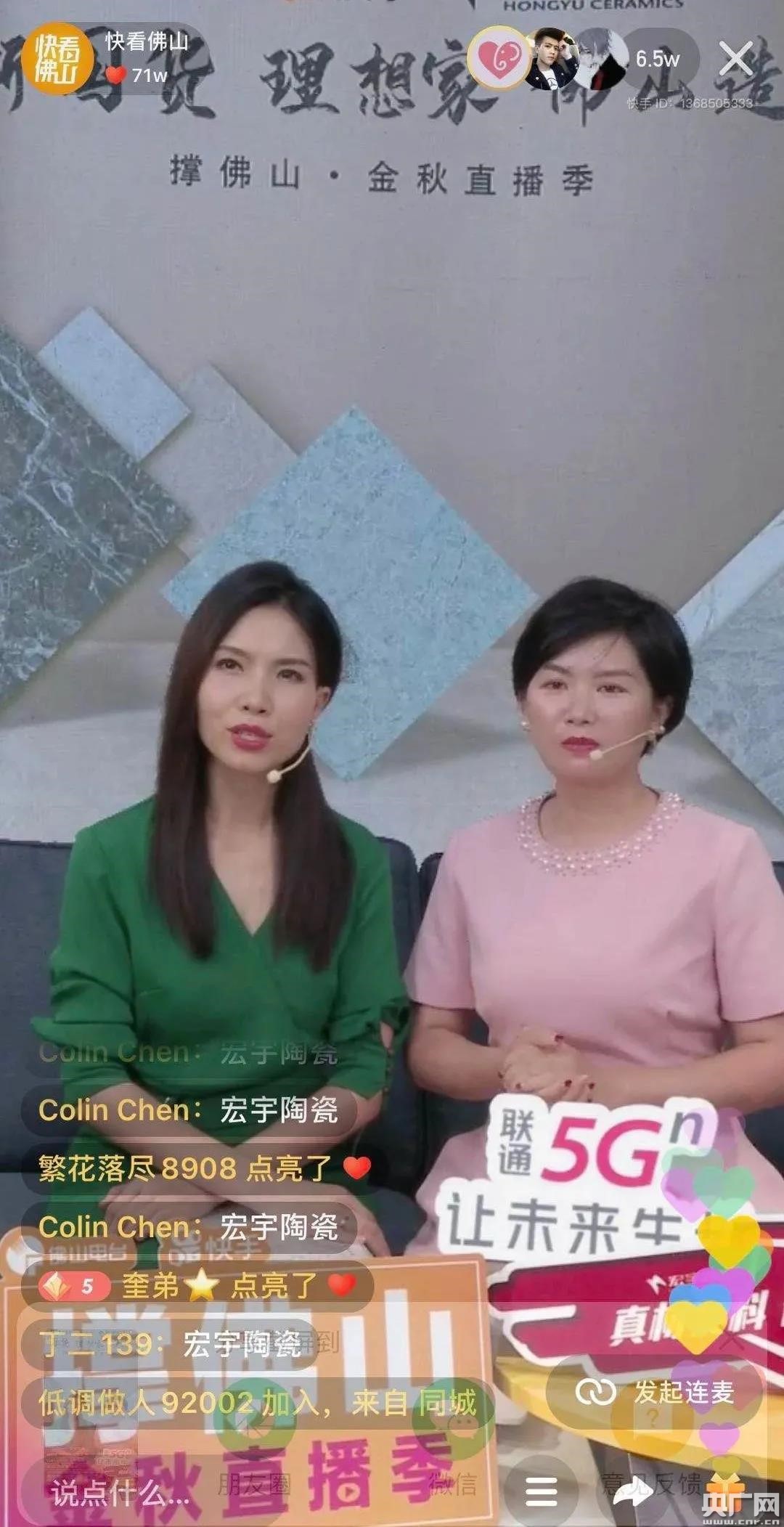 據(jù)了解,首批亮相5G直播室的有宏宇陶瓷、萬和電氣、聯(lián)邦家私、格蘭仕、東鵬陶瓷、佛山照明等品牌企業(yè)。其中,首場佛山企業(yè)—宏宇陶瓷專場,半小時點贊量超過100萬,最高實時在線人數(shù)近8萬。