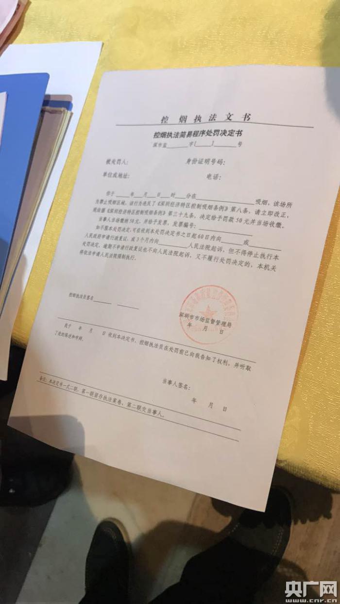 正當(dāng)大家都對抽查結(jié)果感到滿意時。突然間,前方一個叼著一支香煙的黑色背影引起了執(zhí)法人員的注意。執(zhí)法人員立馬上前制止并進(jìn)行懲戒教育。記者發(fā)現(xiàn),在這位先生的餐桌上擺放著香煙和打火機(jī)。面對執(zhí)法人員到來,這位先生懵住了,他連忙說:“自己是第一次(犯錯)!币煌燥埖呐笥岩矌兔忉尩,這位先生今天剛到深圳不知道深圳有禁煙的規(guī)定。希望執(zhí)法人員能網(wǎng)開一面。記者問他們,吸煙的時候,餐館的經(jīng)營人員有沒有過來進(jìn)行勸阻,他們說:“我們剛坐下,剛把煙拿出來,就被執(zhí)法人員發(fā)現(xiàn),服務(wù)員還來不及勸阻!苯(jīng)過執(zhí)法人員耐心地勸導(dǎo)教育,吸煙者最終“笑”著虛心接受教育以及50元處罰。
