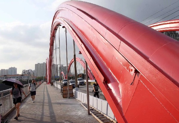 以前的解放橋,只有在晚上才能看到它的美。但如今的解放橋,換上一身紅裝后,即便是白天,也能顯得青春、生機(jī);鸺t的外衣,呼應(yīng)著“解放”二字,再映襯著廣州藍(lán)天,相信,這樣的解放橋,也將成為城市的又一道風(fēng)景線。 -