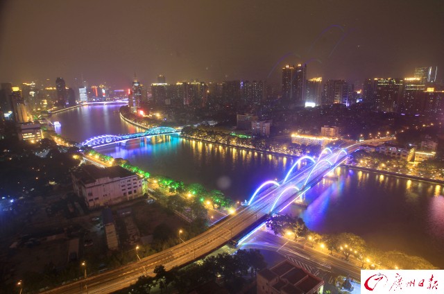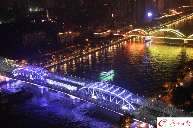 換新顏!廣州解放橋著紅裝。廣報記者 黎旭陽/攝 -