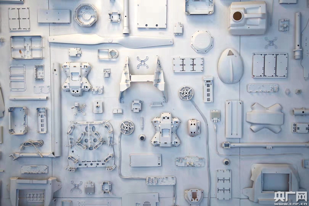 農(nóng)業(yè)無(wú)人機(jī)零件展示墻。(央廣網(wǎng)發(fā))