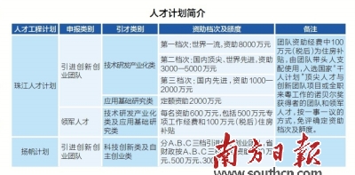 我省引才最有影響和效果的是“珠江人才計劃”。到今年8月31日,2016年廣東省“珠江人才計劃”引進創(chuàng)新創(chuàng)業(yè)團隊和領軍人才的申報截止,引來250個報名者,是去年的2.5倍。據(jù)悉,創(chuàng)新創(chuàng)業(yè)團隊最高檔次團隊將獲8000萬元資助,領軍人才入選者獲600萬元/名的資助。這一計劃啟動以來,我省引進117個海內外優(yōu)秀團隊,累計獲省財政資金28億元資助,聚集各類高端人才850名,其中諾貝爾獎獲得者2名,國內外院士31名。