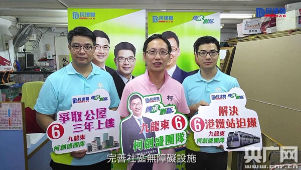 柯: 其實這個口號就能很好的表現(xiàn)出兩個狀況的。第一個就是反映出民建聯(lián)是一個能夠給年輕人多點嘗試參與政治機會的政黨。我們希望通過“有年輕,有幹勁”這種想法,向議會注入新的動力。讓九東的市民知道年輕人是有能力,能夠擔(dān)當(dāng)起政治工作。第二句創(chuàng)新為九東,是因為九龍東面臨著很多老大難的問題,我們交通擁堵問題,長者人口多,貧窮問題嚴重,房屋問題備受關(guān)注。所以我們能夠希望通過新的思維,讓政府關(guān)注我們九龍東,所以就想到這個口號了。