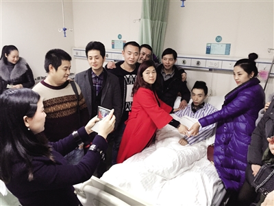 昨日,市腫瘤醫(yī)院病房,同學(xué)們從合川趕來(lái)看望劉錕。