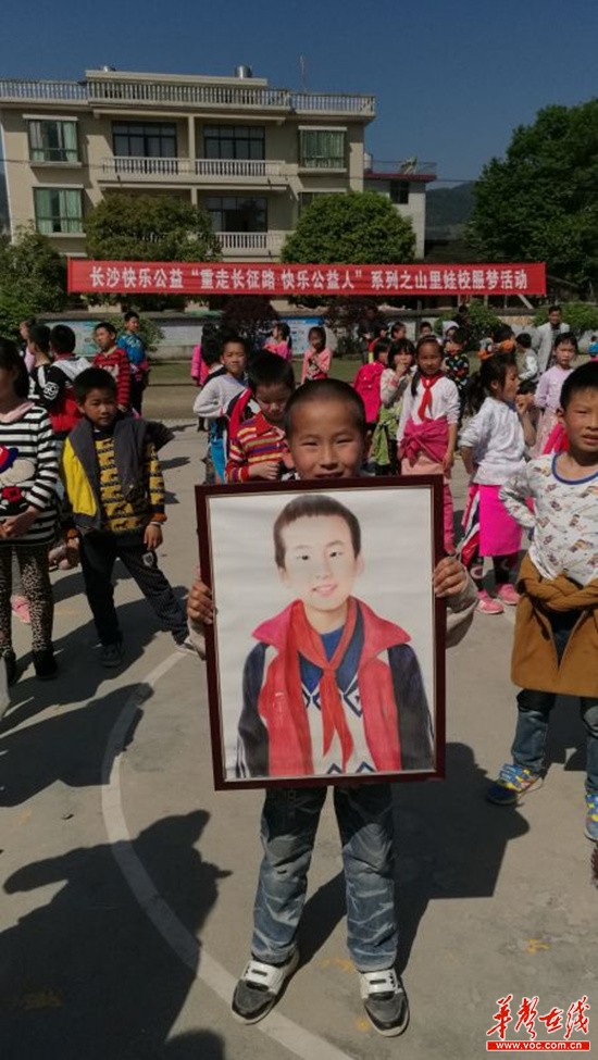 學(xué)校孩子們早早就列隊(duì)歡迎志愿者的到來,活動現(xiàn)場氣氛熱烈,秩序井然。志愿者們?yōu)樯絽^(qū)孩子帶去四百多套嶄新的校服和各種文化用品,孩子們?yōu)橹驹刚呦瞪霞t領(lǐng)巾。來自長沙理工大學(xué)城南學(xué)院的志愿者為孩子們送上親手畫的油畫和素描肖像,孩子們看到自己的畫像格外興奮,紛紛傳閱,愛不釋手。留守兒童鄒俊怡開心的說“長這么大,第一次收到自己的油畫像,非常高興”,留守兒童奉宇說“沒想到哥哥姐姐們能把自己畫得這么好,簡直跟照相機(jī)拍出來一樣,真是非常珍貴的禮物”。