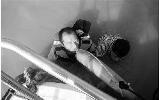 民警金衛(wèi)良在江中緊緊抓住跳江者。