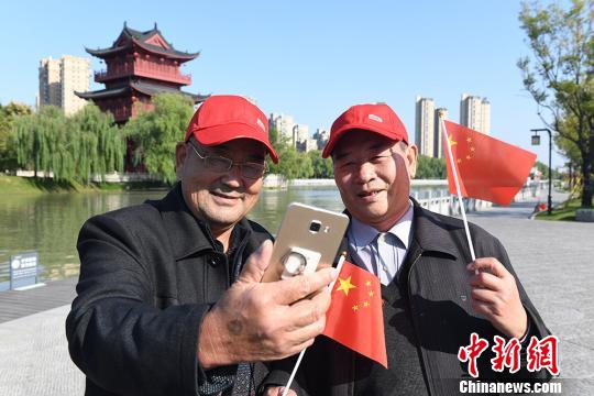 老人們紛紛用手機(jī)拍攝下日異月新的家鄉(xiāng)!」饘毩 攝
