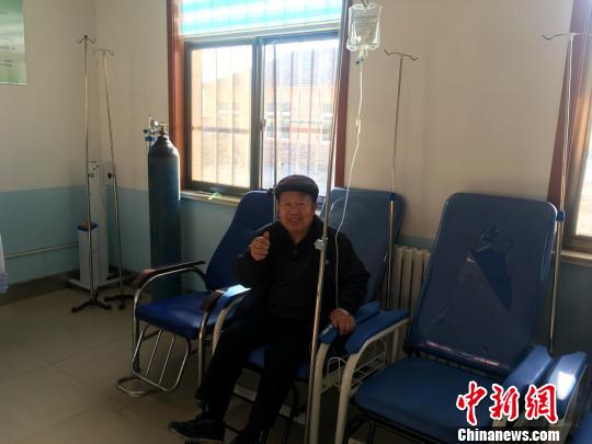 圖為75歲的村民張尚中在中心村衛(wèi)生室輸液。談到現(xiàn)在就醫(yī)的便利,他豎起大拇指!±钣 攝