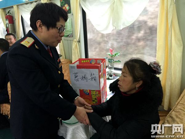 南京開往昆明的K155次列車列車長(zhǎng)王華在安慰不慎遺失錢的旅客楊曉艮。