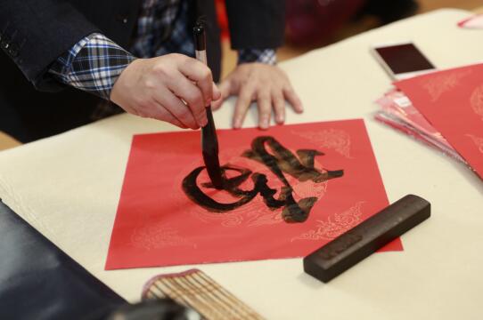 央廣網(wǎng)北京1月15日消息(記者陳江南 母晨靜)1月15日下午,“福滿京城 春賀神州”——“翰墨譜寫(xiě)新時(shí)代 丹青共繪學(xué)院路”2019年新春送福書(shū)畫(huà)筆會(huì)活動(dòng)在北京市海淀區(qū)學(xué)院路街道社區(qū)服務(wù)中心舉行。中國(guó)藝術(shù)研究院博導(dǎo)、全國(guó)政協(xié)委員陳醉,清華大學(xué)美術(shù)學(xué)院博導(dǎo)陳池瑜教授,中國(guó)國(guó)家博物館研究員晁岱雙,國(guó)務(wù)院參事室研究員孟云飛,中書(shū)協(xié)理事、北京書(shū)協(xié)副秘書(shū)長(zhǎng)郭建勛,北京書(shū)協(xié)美協(xié)雙料會(huì)員、北京職工書(shū)畫(huà)協(xié)會(huì)副秘書(shū)長(zhǎng)張志國(guó)及北京美協(xié)張龍等十余位著名書(shū)畫(huà)藝術(shù)家,海淀區(qū)及學(xué)院路相關(guān)領(lǐng)導(dǎo),學(xué)院路街道離退休老干部、文明引導(dǎo)員、保潔人員、保安等近百人參加了本次活動(dòng)。