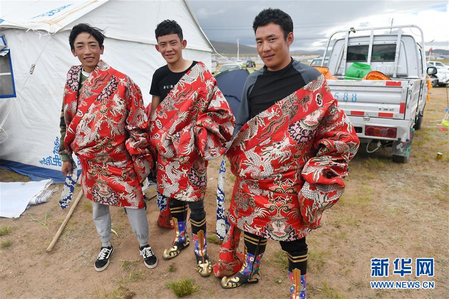 9月12日,藏族牧民身著盛裝參加青海省玉樹(shù)藏族自治州曲麻萊縣的首屆“教育節(jié)”。