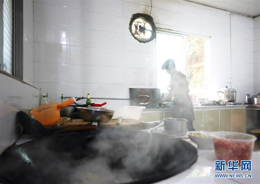 5月7日,劉麗紅在大柏地鄉(xiāng)政府的廚房內(nèi)燒菜。