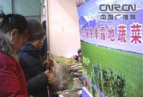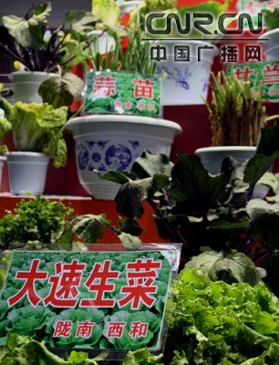 中廣網(wǎng)蘭州1月21日消息(記者 張磊) 連日的降雪讓整個蘭州籠罩在灰白的冷色調(diào)里,但是隨著第二屆隴南市冬季露地蔬菜博覽會的開幕,那鮮嫩的綠色頓時讓蘭州市民眼前一亮。