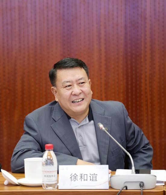 北汽集團(tuán)黨委書(shū)記、董事長(zhǎng)徐和誼在新聞發(fā)布會(huì)現(xiàn)場(chǎng)回答媒體提問(wèn)