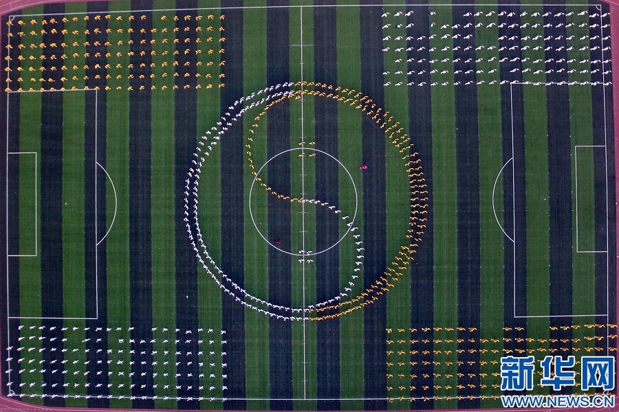 4月12日,河北省廣宗縣第一中學(xué)學(xué)生在練習(xí)太極拳。新華社發(fā) 陳雷攝