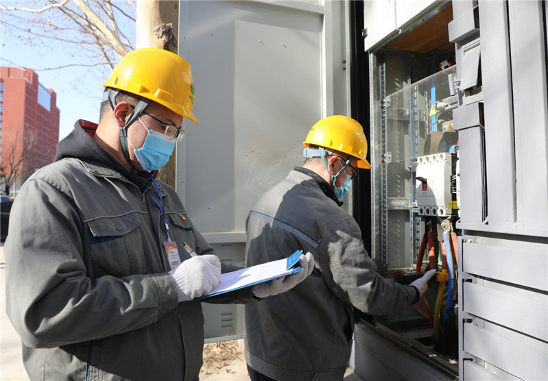 固安供電公司工作人員對(duì)供電設(shè)備進(jìn)行巡查檢測(央廣網(wǎng)發(fā) 門叢碩 攝)