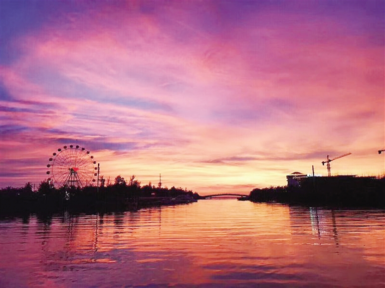 8月22日,臨近傍晚,壯麗晚霞在海南多地出現(xiàn),不少本地居民和外地游客用手機、相機拍下這美麗的瞬間。一張張美麗如畫的照片引得眾多網(wǎng)友爭相轉(zhuǎn)發(fā),“刷爆”微信朋友圈。