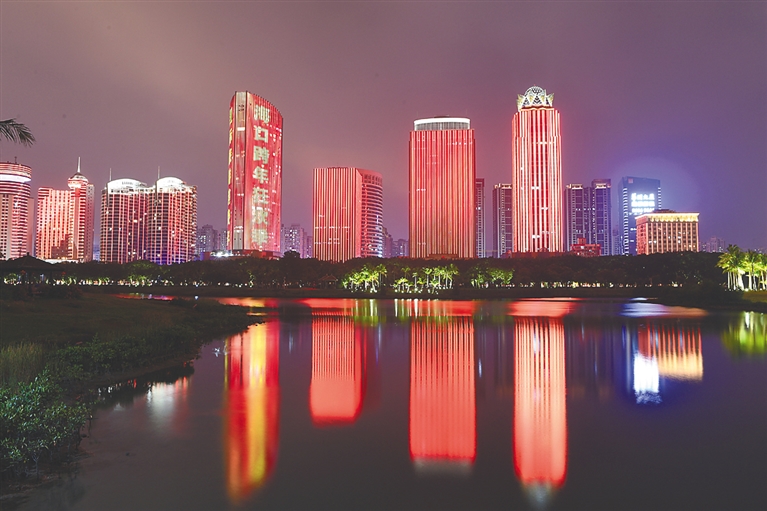 炫麗的燈光秀預(yù)熱“?诳缒昕駳g季”。通訊員 石中華 攝