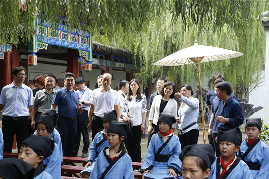 為貫徹《教育部等十一部門關(guān)于推進(jìn)中小學(xué)生研學(xué)旅行的意見》和《河南省教育廳等10部門關(guān)于推進(jìn)中小學(xué)生研學(xué)旅行的實(shí)施方案》,深入落實(shí)全省文化旅游大會(huì)精神,加快推進(jìn)中小學(xué)生黃河文化研學(xué)旅行工作,河南省文化和旅游廳、省教育廳研究決定,于7月24日在開封市召開 “河南省黃河文化研學(xué)旅行會(huì)議”。中國翰園碑林為此次大會(huì)的研學(xué)觀摩基地之一。河南省教育廳副廳長毛杰、河南省文化和旅游廳副廳長朱建偉和與會(huì)領(lǐng)導(dǎo)及嘉賓蒞臨中國翰園碑林參加本次觀摩活動(dòng)。