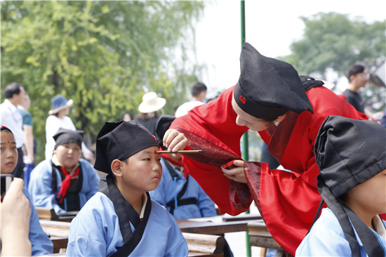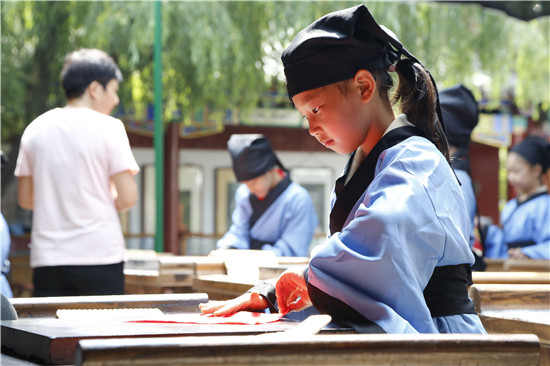 中國翰園碑林作為大型文化藝術(shù)園林,始終堅(jiān)持以傳承弘揚(yáng)中國書法文化為宗旨,結(jié)合自身主題定位,著力開發(fā)以書法為主題的特色研學(xué)課程及線路,歷經(jīng)近3年的打造,現(xiàn)已開發(fā)“國學(xué)禮儀體驗(yàn)之旅”、“小狀元研學(xué)之旅”、“小小書法家研學(xué)之旅”、“感恩孝行研學(xué)之旅”四大主題線路。課程融入故事情節(jié)、體驗(yàn)度高,深受孩子們的喜愛。其中“小小書法家研學(xué)之旅”被河南省教育廳、河南省文化和旅游廳評為河南省研學(xué)實(shí)踐教育特色課程和研學(xué)精品線路。同時(shí)景區(qū)圍繞傳承弘揚(yáng)民族傳統(tǒng)文化為核心,培養(yǎng)了一批優(yōu)秀的經(jīng)營管理人才,包括書畫家、刻碑師、拓片師,專業(yè)研學(xué)導(dǎo)師等。