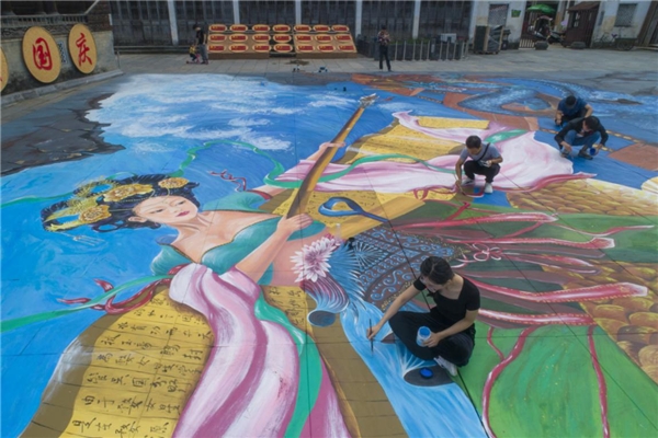 婺源縣唯一一家5A景區(qū)---江灣,給所有游客帶來前所未有的文化之旅。以往來婺源的游客,只有聽導(dǎo)游講解婺源的由來,上古傳說婺女?dāng)仳札埖墓适。婺源江灣景區(qū)請(qǐng)了10位藝術(shù)家,用了一個(gè)月的時(shí)間,在廣場(chǎng)上創(chuàng)作了巨幅3D立體畫“婺女傳說”,國慶首次亮相在大家面前。婺源江灣廣場(chǎng),400平方巨幅3D立體畫“婺女傳說”創(chuàng)全國景區(qū)之最。
