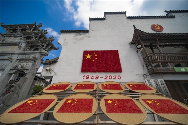 江灣廣場(chǎng)曬秋,用辣椒和玉米拼成國旗圖案,以當(dāng)?shù)卮迕裉赜械那飼穹绞綉c祝祖國71歲生日。逛累了就到公社食堂買一張飯票,吃一回大鍋飯,回憶一下60、70年代的時(shí)光。