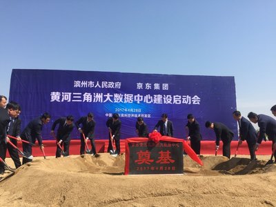 北京2017年4月28日電 -- 4月28日,在山東省政府、山東省商務(wù)廳、濱州市委市政府的大力支持下,由京東集團和濱州市人民政府共同打造的“京東黃河三角洲云計算大數(shù)據(jù)中心”在濱州經(jīng)濟技術(shù)開發(fā)區(qū)正式破土動工,預(yù)計建成后將為當?shù)貛頂?shù)百億元的產(chǎn)值。