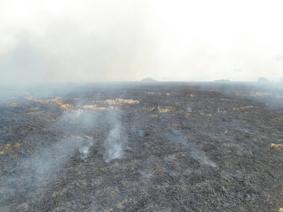 據(jù)本報(bào)記者目測(cè):淮河北岸、淮河大橋東側(cè)的麥茬地,過(guò)火面積近百畝。其上空因滾滾濃煙彌漫,天空暗了;因煙嗆無(wú)法落在枝頭的鳥(niǎo)兒,凄慘地叫著。