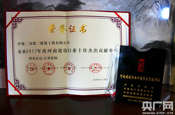 公司喜獲“河南建設(shè)行業(yè)十佳杰出貢獻單位”榮譽稱號