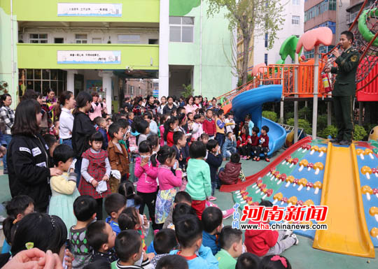 洛陽(yáng)西工600名幼兒現(xiàn)場(chǎng)體驗(yàn)火場(chǎng)逃生 張左宏/攝
