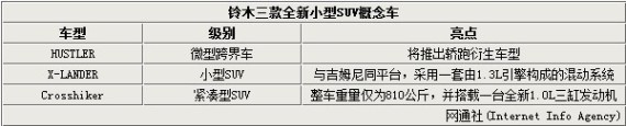 2013-11-04 08:40 來源:網(wǎng)通社我要評(píng)論央廣網(wǎng)河南分網(wǎng)消息 據(jù)網(wǎng)通社報(bào)道:隨著SUV市場(chǎng)逐漸向小型化發(fā)展,一直專注于小型車領(lǐng)域的鈴木品牌僅有吉姆尼一款定位在A0級(jí)越野SUV市場(chǎng)的車型,而鈴木官方宣布將在11月舉辦的東京車展首發(fā)亮相三款定位在小型SUV市場(chǎng)的概念車。網(wǎng)通社查閱相關(guān)資料后發(fā)現(xiàn),三款新車型中,名為X-Lander的概念車將采用一套由1.3L引擎所組成的混動(dòng)系統(tǒng),并與吉姆尼同平臺(tái)打造,競(jìng)爭(zhēng)對(duì)手則瞄向了別克昂科拉;另外Crosshiker則將搭載一臺(tái)全新1.0L三缸發(fā)動(dòng)機(jī)。