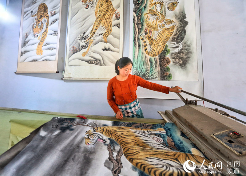 近日,記者走進(jìn)民權(quán),用鏡頭見(jiàn)證“畫虎村”的新氣象。全村1000多人中,有400多人從事以畫虎為主的繪畫產(chǎn)業(yè)。他們的作品不僅行銷國(guó)內(nèi)書畫市場(chǎng),還遠(yuǎn)銷美國(guó)、日本、韓國(guó)、新加坡等國(guó)家。2016年,王公莊村年繪畫產(chǎn)業(yè)創(chuàng)產(chǎn)值6000多萬(wàn)元,輻射帶動(dòng)周邊1500多人從事繪畫相關(guān)工作,昔日的農(nóng)業(yè)村舊貌換新顏,變成了名副其實(shí)的“農(nóng)民畫虎第一村”。