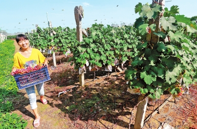 圖為在郟縣長橋鎮(zhèn)確李村“神農夫葡萄莊園”,返鄉(xiāng)創(chuàng)業(yè)青年李艷娟正在果園里采摘葡萄,豐收的喜悅使她笑逐顏開。