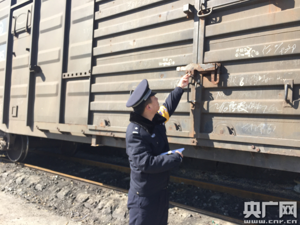 民警李遠(yuǎn)亮檢查施封車