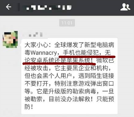 比特幣勒索病毒“想哭”爆發(fā)后,關(guān)于手機(jī)會(huì)感染此病毒的傳聞此起彼伏。各種信息在社交網(wǎng)絡(luò)平臺(tái)大肆傳播,有傳言稱,“全球爆發(fā)了新型的電腦病毒‘想哭’,手機(jī)也會(huì)被侵入,無(wú)論是安卓系統(tǒng)還是蘋果系統(tǒng)!”同時(shí)還稱,“這是升級(jí)版的勒索病毒,一旦被勒索,目前沒(méi)有辦法解救,只能預(yù)防!”
