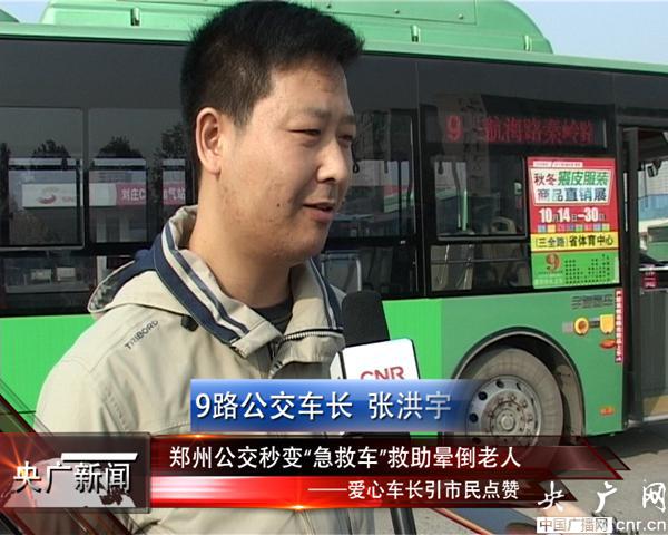近日,來自鄭州公交總公司9路公交車的張洪宇車長,在駕車行駛中與乘客一起幫助營救昏厥老人的事跡,引起了鄭州市民的廣泛稱贊。