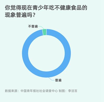 調(diào)查顯示,97.2%的受訪者感覺現(xiàn)在青少年吃不健康食品的現(xiàn)象普遍。
