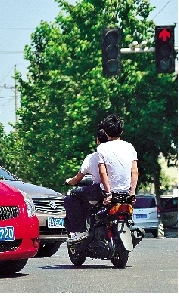 伴隨著“突突突”的摩托聲,騎車男孩稍稍看了一眼穿梭的車流,兩腳蹬地,右手一使勁,摩托車箭一般飛奔出去,這時(shí),由東向西的信號(hào)燈顯示為紅燈。