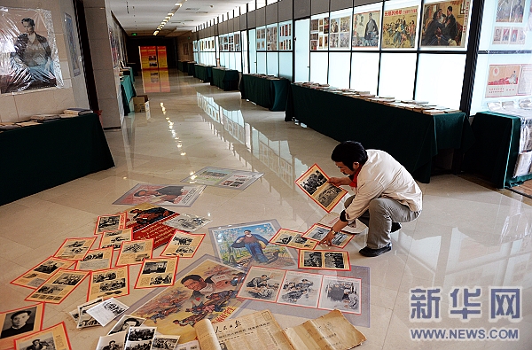 央廣網(wǎng)河南分網(wǎng)消息 據(jù)新華網(wǎng)河南頻道報(bào)道:馮路是鄭州一所大學(xué)的老師,他業(yè)余“癡迷”收藏已有20多年,有關(guān)焦裕祿的藏品他共收藏了2000余件。今年是焦裕祿逝世50周年,馮路在鄭州舉辦展覽,弘揚(yáng)焦裕祿精神,展品包括書(shū)籍、新聞報(bào)道、老照片、畫(huà)報(bào)、海報(bào)等。(記者 趙鵬 攝)
