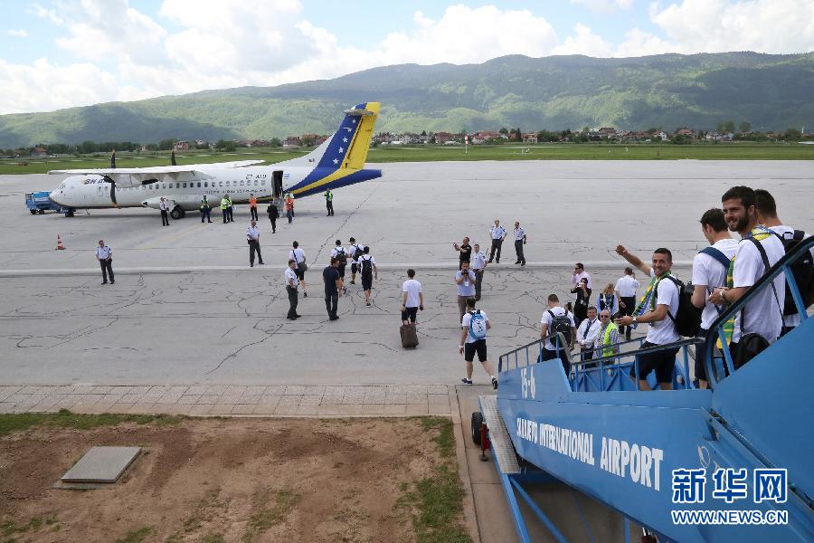 5月27日,波黑國家足球隊(duì)全體成員在薩拉熱窩機(jī)場準(zhǔn)備登機(jī)。當(dāng)日,波黑國家足球隊(duì)乘機(jī)離開波黑,開始征戰(zhàn)巴西世界杯。波黑隊(duì)將飛往美國,在那里與科特迪瓦隊(duì)和墨西哥隊(duì)進(jìn)行兩場友誼賽。新華社發(fā)(哈里斯·梅米亞攝)