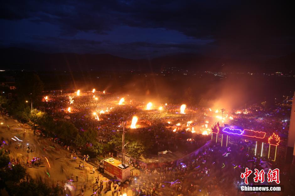 央廣網(wǎng)河南分網(wǎng)消息 據(jù)中新網(wǎng)報道:7月20日,一年一度的彝族傳統(tǒng)民族節(jié)日——四川涼山彝族火把節(jié)在州府西昌火熱上演,吸引來自云南、貴州、成都、重慶、攀枝花等地數(shù)十萬游客前來“打火把”狂歡,來自天南地北的游客圍著熊熊燃燒的篝火手拉手縱情歌舞,盡情釋放旅游途中的歡快。今年西昌舉辦的涼山彝族火把節(jié)以原生態(tài)為主題,分別在西昌城郊的高枧、小廟、洛古波等處設有“打火把”狂歡場地;鸢芽駳g夜是當?shù)匾妥寤鸢压?jié)的重頭戲,據(jù)官方統(tǒng)計,當晚的火把狂歡夜吸引了40多萬人參加。四川涼山是中國最大的彝族聚居區(qū),每年農歷6月24日左右是當?shù)匾妥迦罕娺^火把節(jié)的日子,一般持續(xù)3至5天,期間將開展選美、摔跤、爬桿、斗牛、賽馬、打火把等民族活動。涼山彝族火把節(jié)近年來也被稱為“東方狂歡節(jié)”。(高寒 攝)