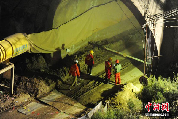 11月4日15時許,正在施工的蘭(蘭州)渝(重慶)鐵路蘭州桃樹坪隧道2號斜井發(fā)生塌方,被確認有9人被埋。傍晚時分,現(xiàn)場陸續(xù)有小型挖掘機和載有安全帽、繩索等救援物品的車輛靠近事故隧道口。記者從事故現(xiàn)場了解到,此工程由中鐵二十一局施工,目前消防等多部門正在進行緊張的救援。楊艷敏 攝