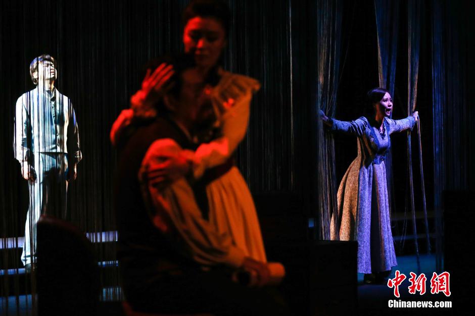 1月29日,是俄羅斯著名作家契訶夫155歲生日,為紀念他的誕辰,由翻譯專家童道明擔任編劇,楊申執(zhí)導(dǎo)的戲劇《愛戀·契訶夫》在中國國家話劇院小劇場正式上演。該劇以《海鷗》在1869年圣彼得堡首演失敗為背景,講述了郁郁寡歡的契訶夫與初戀情人麗卡·米齊諾娃在創(chuàng)作事業(yè)與婚姻情感之間的故事。劇中,演員展現(xiàn)了卸下神性光環(huán)的契訶夫作為一個普通人,如何在自己的理想與現(xiàn)實之間進行取舍的一面,讓觀眾見識到一個更加多面、人性化的契訶夫。中新社發(fā) 富田 攝