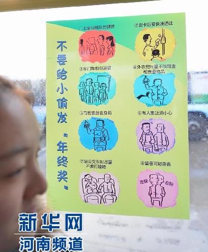 “不要給小偷發(fā)‘年終獎’”、“兜多也防賊”、“見義勇為光榮,膽小怕事可恥”......這些都是小貼士的內(nèi)容,車長劉師傅介紹說,快過年了,許多到鄭州務(wù)工的人員都是帶著一年的辛苦錢準(zhǔn)備回家過年,另外最近放假回家的大學(xué)生也比較多,丟錢丟物的情況時(shí)有發(fā)生。每當(dāng)這個時(shí)候,不僅是丟東西的人難過,他看著心里也不舒服。
