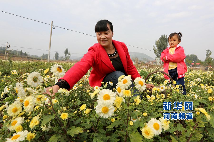 央廣網(wǎng)河南分網(wǎng)消息 2015年10月24日, 地處太行南麓的茶店鎮(zhèn),各色菊花開滿山坡,田野里到處可見(jiàn)采摘菊花的身影。